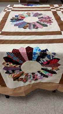 One day this last week at the senior center, the lady who brought the Dresden Plate quilt blocks to show, brought them back all put together in a beautiful quilt top. Very nice! She does neat work.